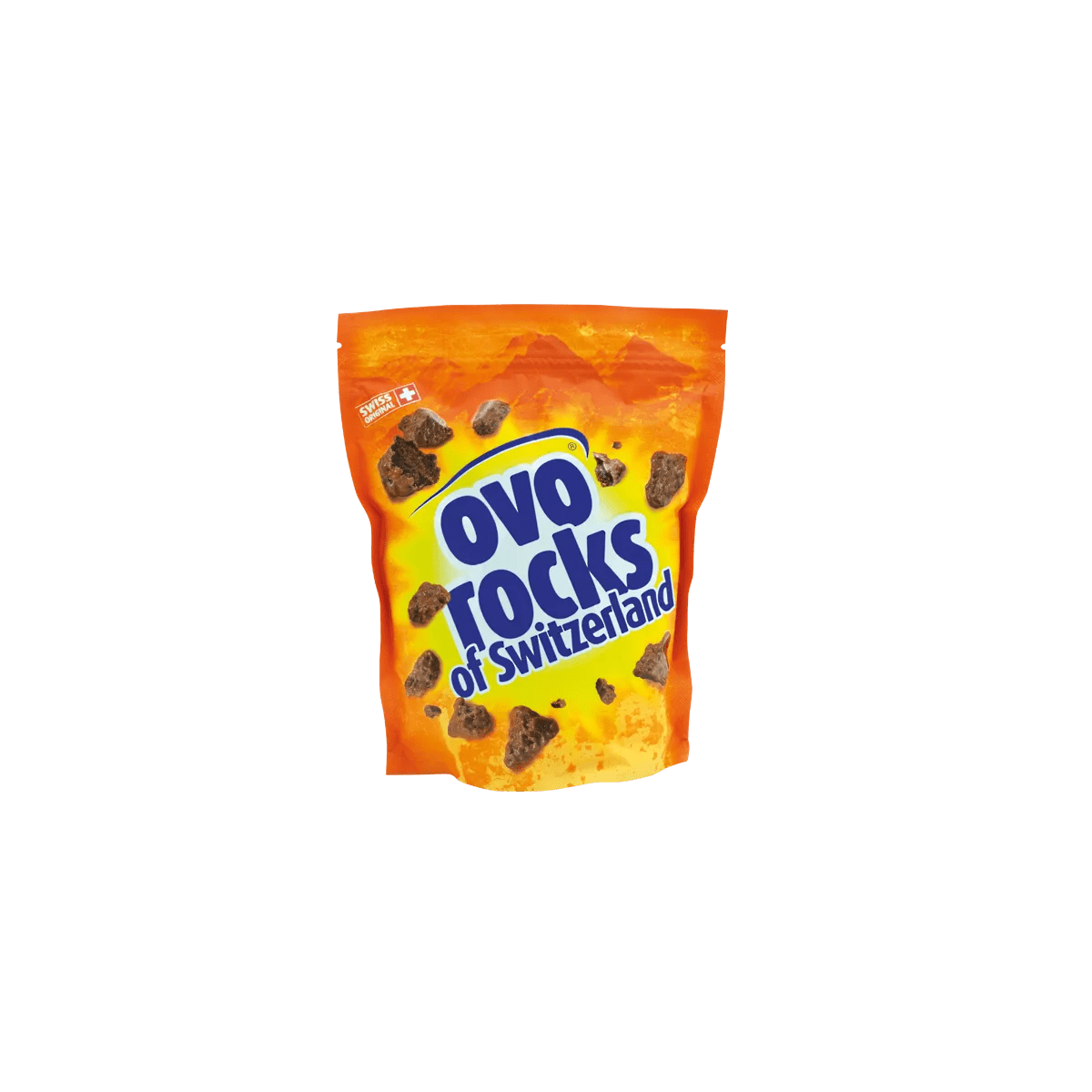 Ein Herz aus luftiger Ovomaltine, umhüllt von feinster Schweizer Milchschokolade. Die Ovo Rocks sind ideal zum Mitnehmen und Teilen. Und bei dieser Menge fällt das Teilen viel leichter. Solltest du oder ihr doch nicht alle Ovo Rocks auf einmal mögen, lässt sich der Beutel leicht wieder verschliessen.